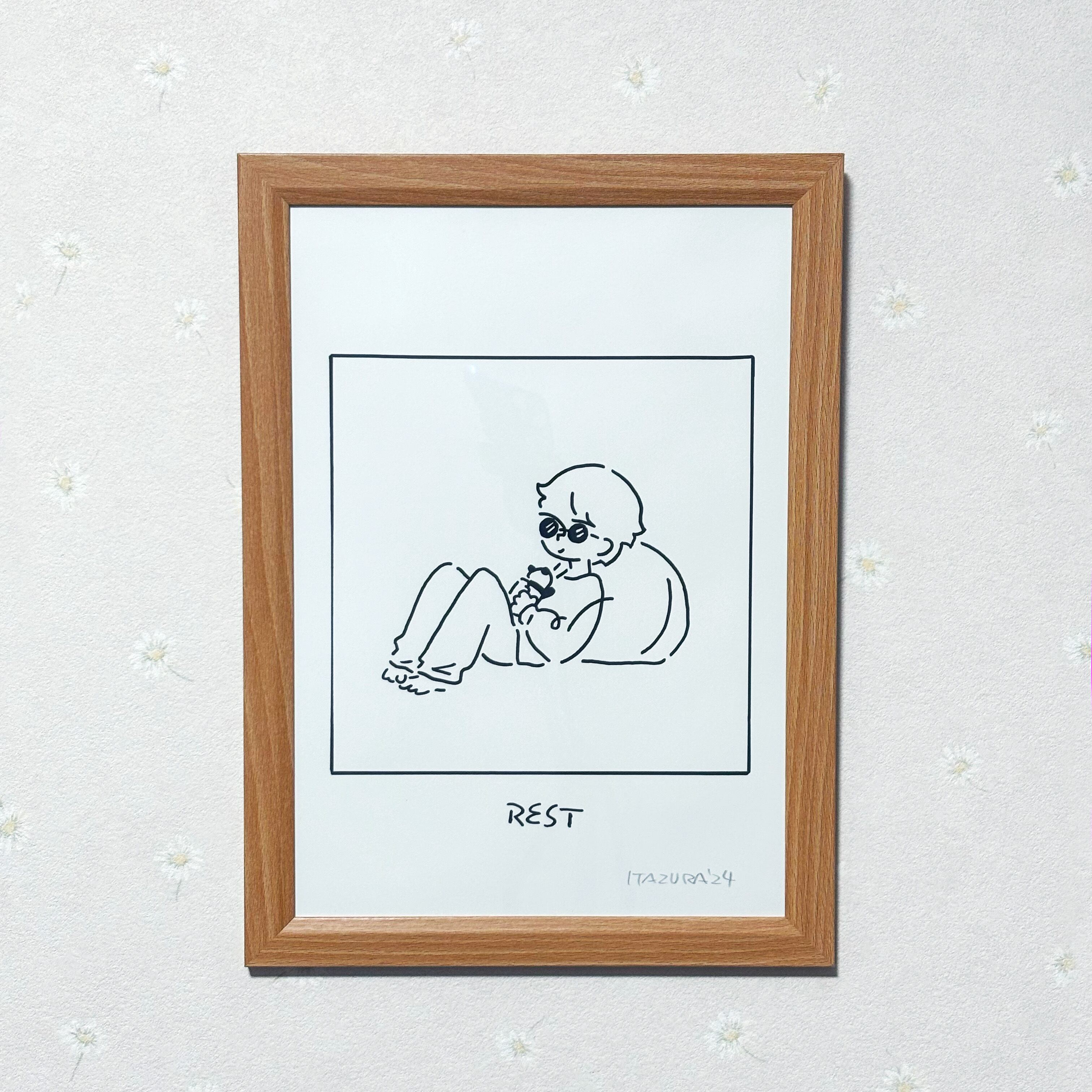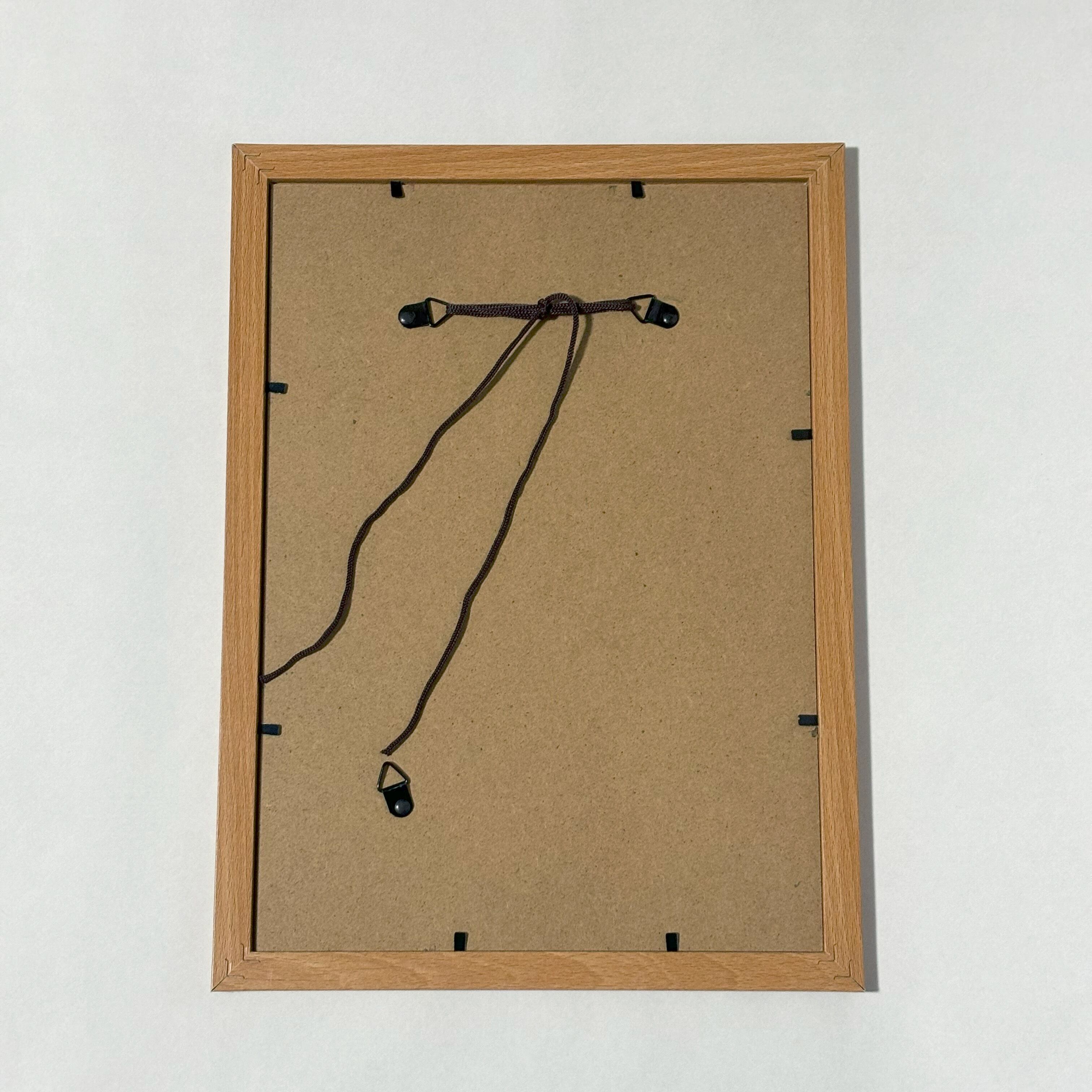 展示の際、作品保護のために簡易額装をしており、フレームに入っていますのでそのままお飾りいただけます。フレーム自体は安価な物なのでお好みで入れ替えていただければと存じます。